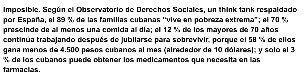 The Economist: “Según el Observatorio de Derechos Sociales, un think tank respaldado por España… solo el 3 % de los cubanos puede obtener los medicamentos que necesita en las farmacias”.