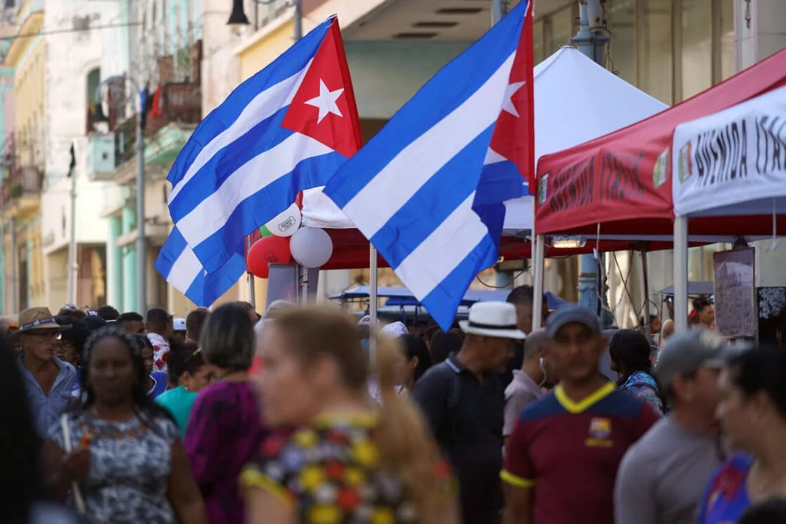 Crowd and Cuban flag